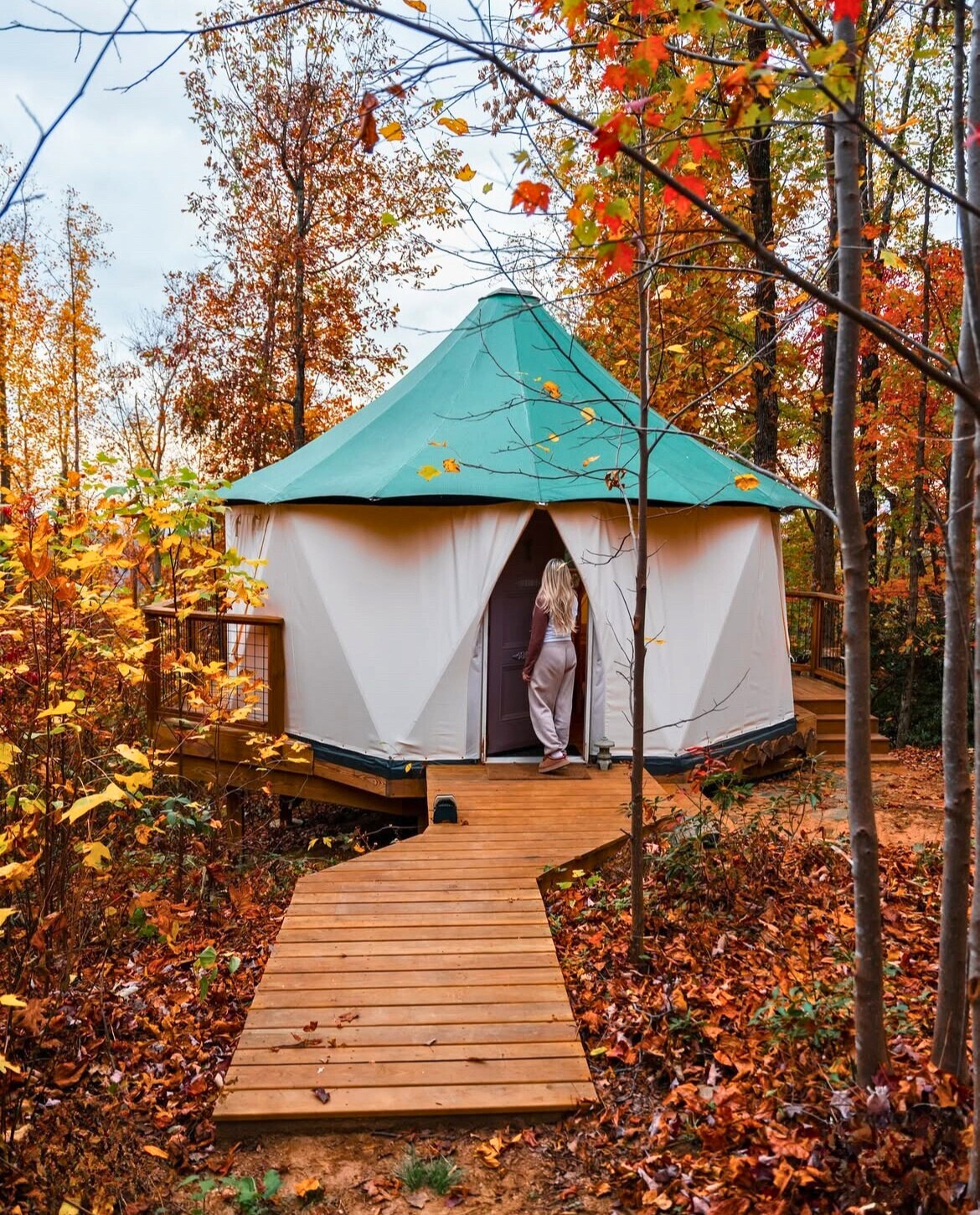 Winter: Frosty mornings + heater-cozy yurts (showers closed).